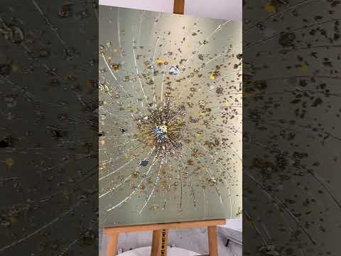 Based on a champagne gold background, the piece is bulit up with layers of gold and silver