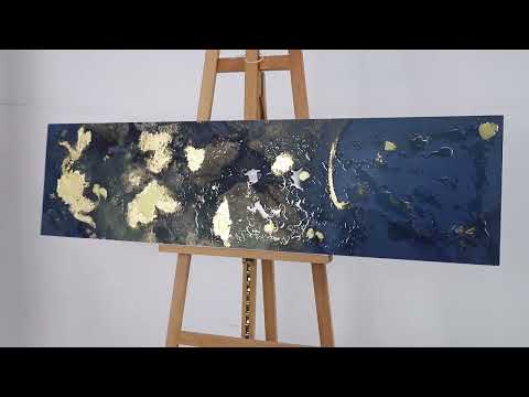 Then clear liquid art resins, micas, and gold leaf are hand applied to give the piece a 3D textural finish.