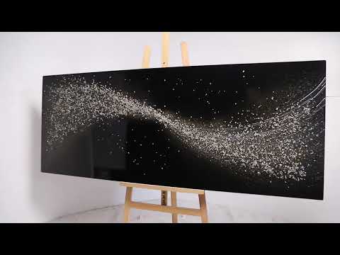 This original metal wall art is created on a gloss black base, chosen to reflect and work with the lighting of your room. Next, crushed recycled glass, dyes and water clear liquid resins are hand thrown to create this stunning effect.